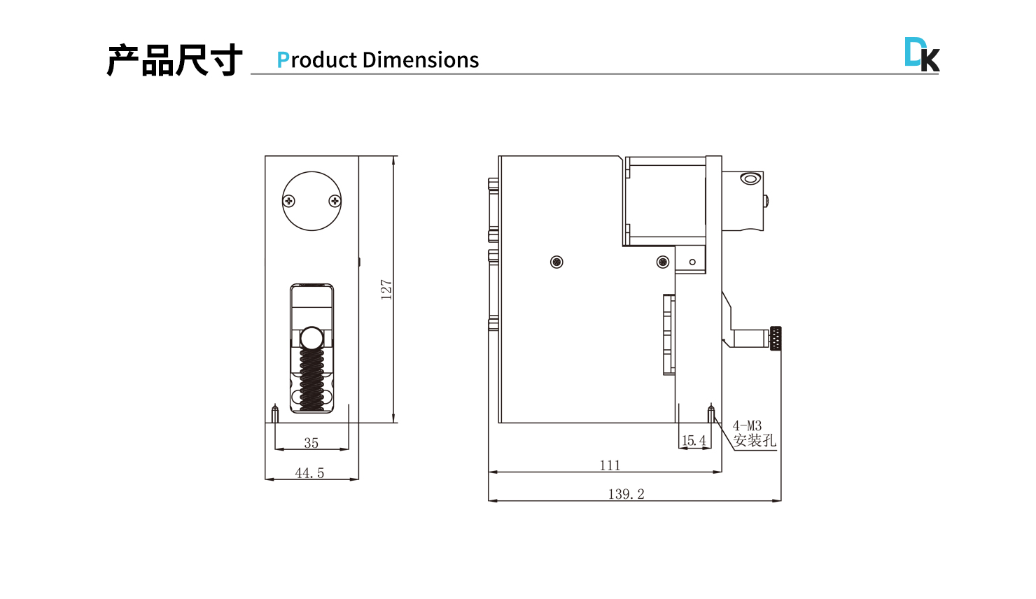 外形尺寸:139.2x44.5x130mm (L×W×H)