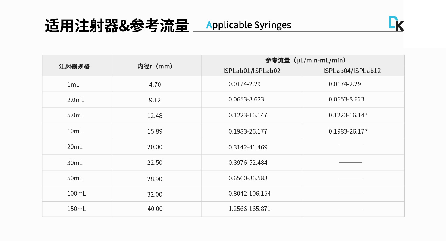 線速度范圍:1μm/min-132mm/min(流量=線速度*注射器內(nèi)截面積)
